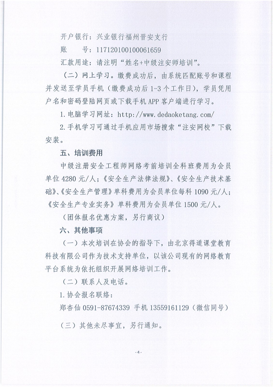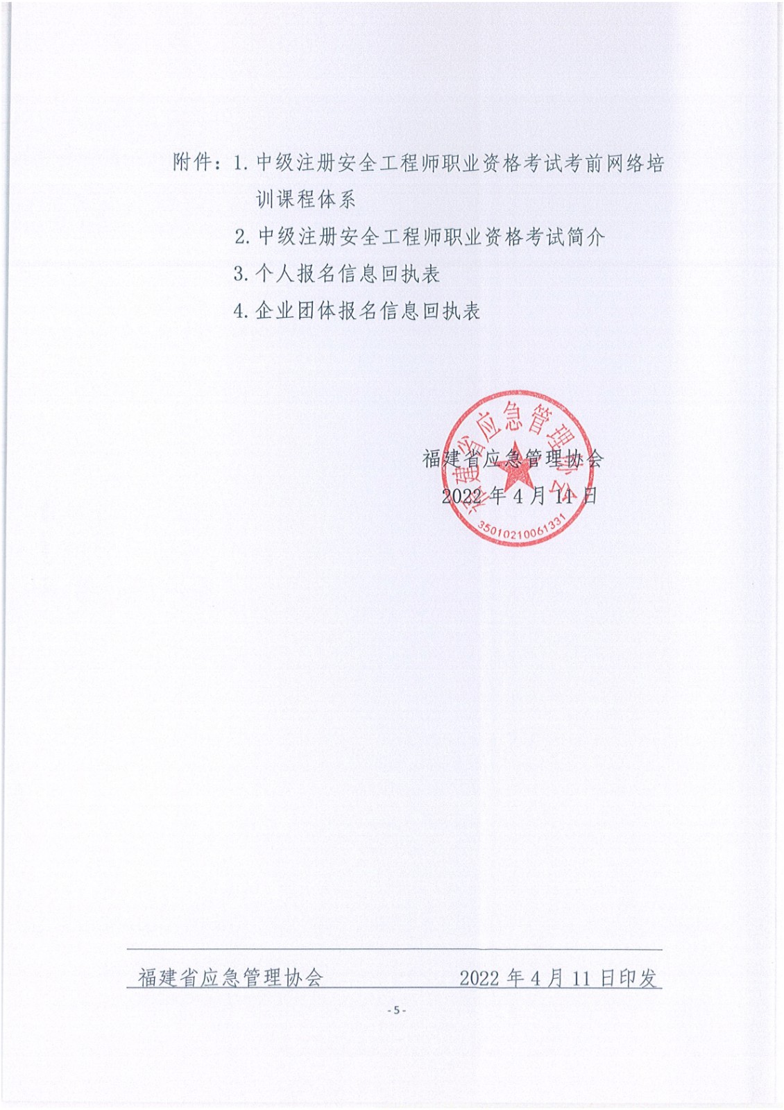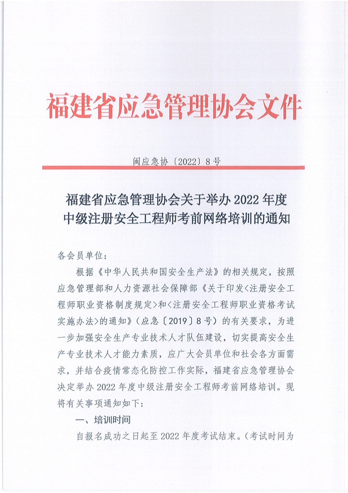 福建省应急管理协会关于举办2022年度中级注册安全工程师考前网络培训的通知
